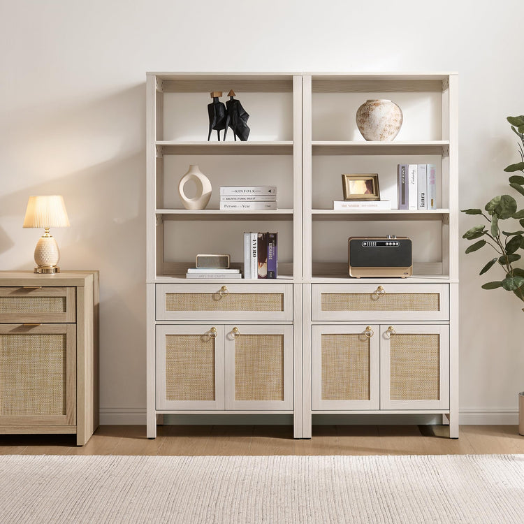 SICOTAS Bookshelf 5 Tier Book Shelf Rattan...