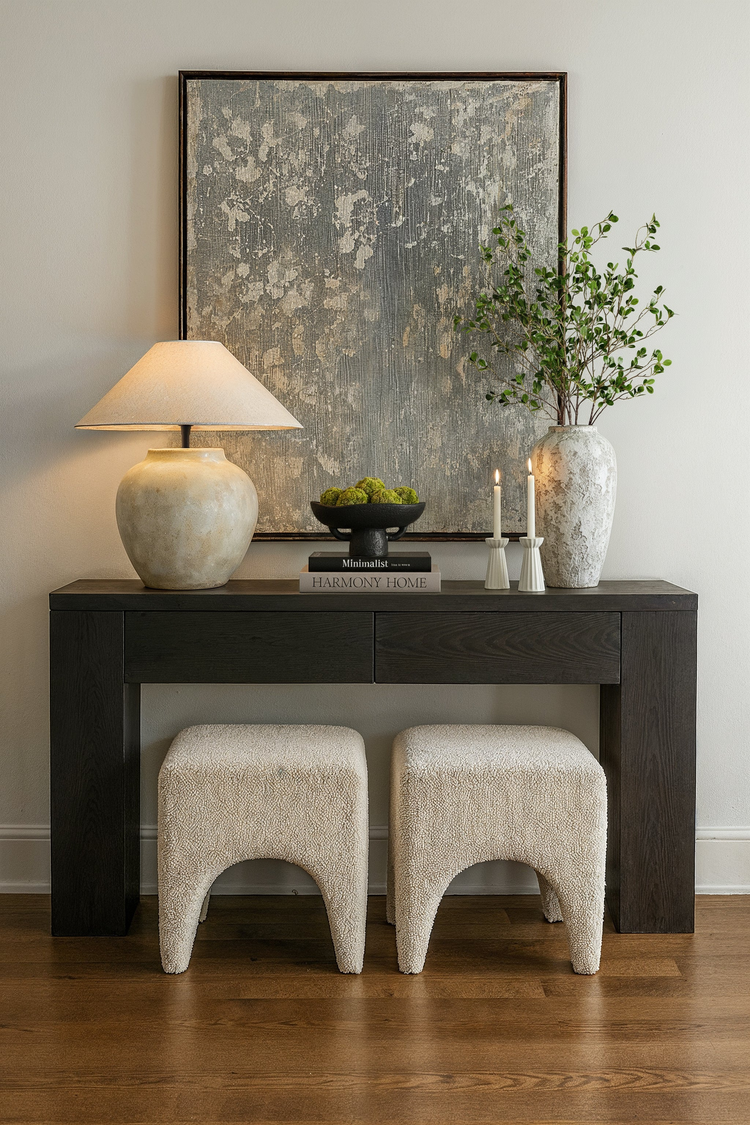 Modern Boucle Upholstered Ottoman, Shoe Ch...